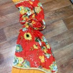 Шарфик НОВЫЙ темно-синий шифоновый с логотипом Фаберлик-15грн, сочно красно-желтый-оранжевый длинный шарф-палантин, надевала пару раз, как новый, коттон с цветами-35грн
