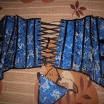 Корсет размер М.Одевался пару раз,изъянов никаких нет,регулируется сзади на шнуровке.К нему идут трусики,новые.