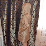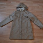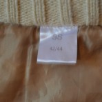 Длина рукава 65 см. Длина изделия 92 см. Застежка выполнена на змейке с кнопками. Ворот изделия сделан из трикотажного полотна крупной вязки.