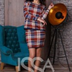 Юбочный костюм со свободным батником в красно-сине-бежевую клетку