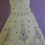 Безумно красивое, яркое хлопковое платье на бретелях, с необычной вышивкой, сзади просто однотонное, размер указан L. Бретели регулируются по длине. Верх - облегает фигуру корсетом, низ - клёш.