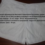 Шортики производства Вьетнам в идеальном состоянии, указан рост 152-158 см (12-13 лет), по факту подойдут и на 44 взрослый размер. Длина спереди - 31 см, сзади - 34 см. Застегиваются на молнию+кнопку+стягиваются шнуровкой. Сзади есть функциональный кармашек. Цена - 70 грн.