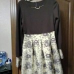 Отличное новое платье одето 1р. Смотрится очень нарядно за счет необычных манжет и юбки колокольчика, которая выгодно подчеркнет талии и скроет недостатки. На праздничный вечер в таком платье Вы будите блестать. Звоните отвечу на все дополнительные вопрсы с удовольствием.