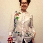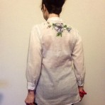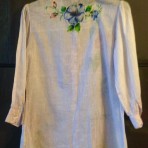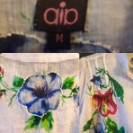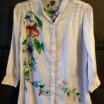 Тончайшая рубашка окрашена и расписана вручную в технике батик цветами. Рукав 3/4. Элементы "состаренности". Очень эффектная! ПОГ-48 см.