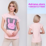 Милая женская футболка. Прямой крой, короткий рукав реглан, круглая горловина. Произведено изделие из качественного турецкого хлопка.Футболка с розовым зайкой - милое изделие для ежедневного лука. Цвет: светло-розовый. Размеры: М. Цена: 215 грн.⠀