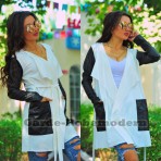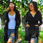 Стильный кардиган на запах можно носить как с пояском, так и без. Края передней части свободно ниспадают. По бокам расположены два вместительных кармана. Такая модель удобная и универсальная, подойдет для создания повседневного или спортивного lookа.