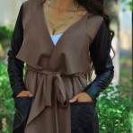 Стильный кардиган на запах можно носить как с пояском, так и без. Края передней части свободно ниспадают. По бокам расположены два вместительных кармана. Такая модель удобная и универсальная, подойдет...