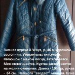 Зимняя куртка X-Woyz, р. 46 в хорошем состоянии. Утеплитель: тинсулейт. Капюшон с мехом песца, затягивается. Мех отстегивается. Куртка застегивается на молнию+кнопки. Длина - 105 см, рукав - 64 см. Немного "заедает" молния. Цена - 400 грн.