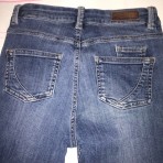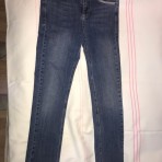 Пояс 70 бедра 78 шир брюч в бедре 43 см внизу 30.Длина 98+4 см пояс.Состав: 98% коттон 2% эластан темно-синие плотные .Одеты несколько раз\оказались тесными дочь поправилась\Естьнедостаток: при выдергивании пояса оторвалась шлейка которую в ателье аккуратно заштопали и пришили с изнанки.На лицевой стороне ничего не видно.Поэтому фирменные джинсы французской фирмы продаются так дешево