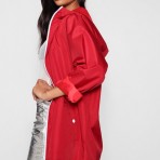 Детали: ветровка дождевик с капюшоном, красная ветровка, змейка спереди, карманы по бокам на кнопках, манжеты, утяжка подола.