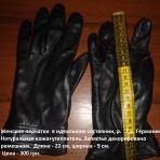 Женские перчатки в идеальном состоянии, р. 7,5. Германия. Натуральная кожа+утеплитель. Запястье декорировано ремешком. Длина - 22 см, ширина - 9 см.