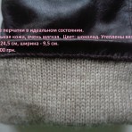 Натуральная кожа, очень мягкая. Цвет: шоколад. Утеплены вязкой. Длина - 24,5 см, ширина - 9,5 см.