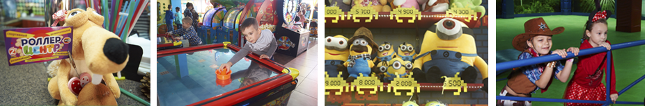 Для маленьких любителей развлечений мы предлагаем массу аттракционов, игровых автоматов, приятных выигрышей и сюрпризов, лабиринт, бассейн с шариками и площадку.