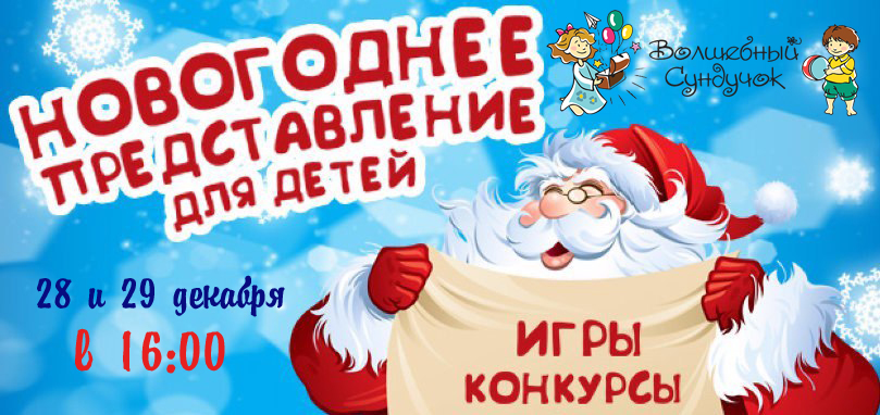28 и 29 декабря в 16:00 в "Волшебном сундучке" для Вас и Ваших детей готовятся занимательные новогодние шоу!!! ))))