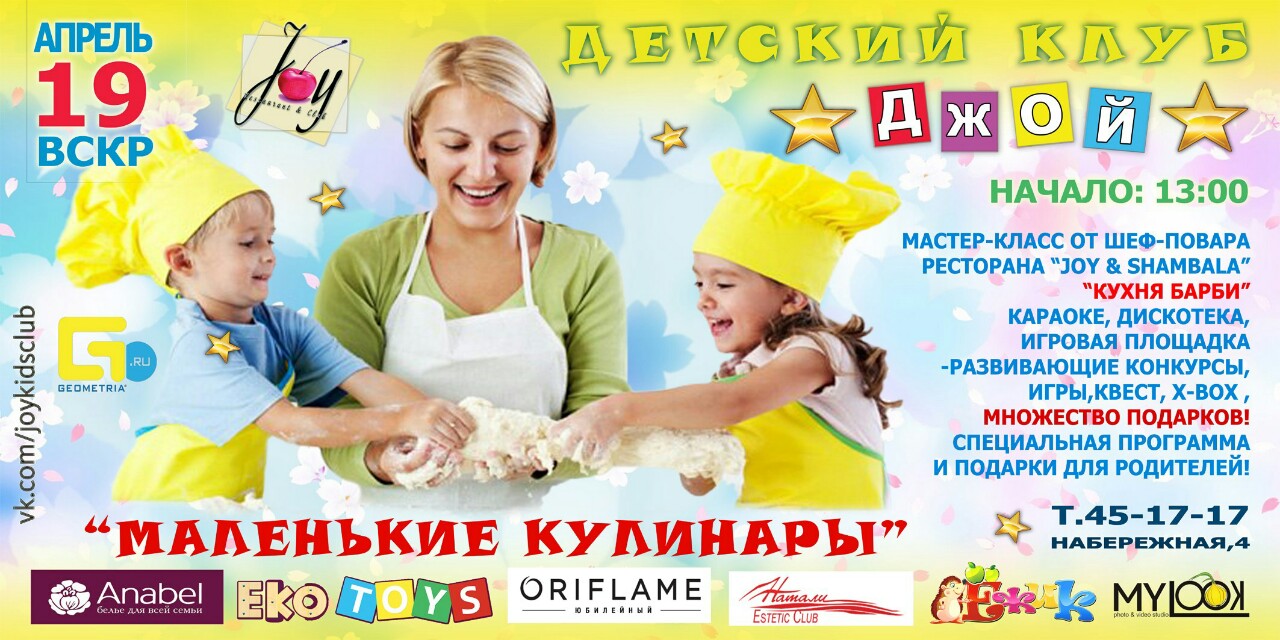 Вечеринка «Маленькие кулинары» и 5 бесплатных билетов. Приглашает Детский Клуб "Джой"