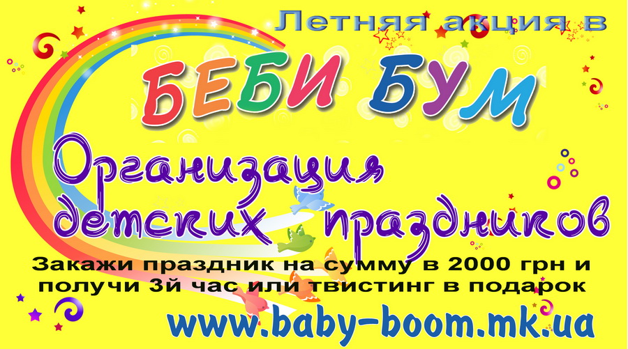 0 комментариев “Летняя акция от БЕБИ БУМ - организации детских праздников!”