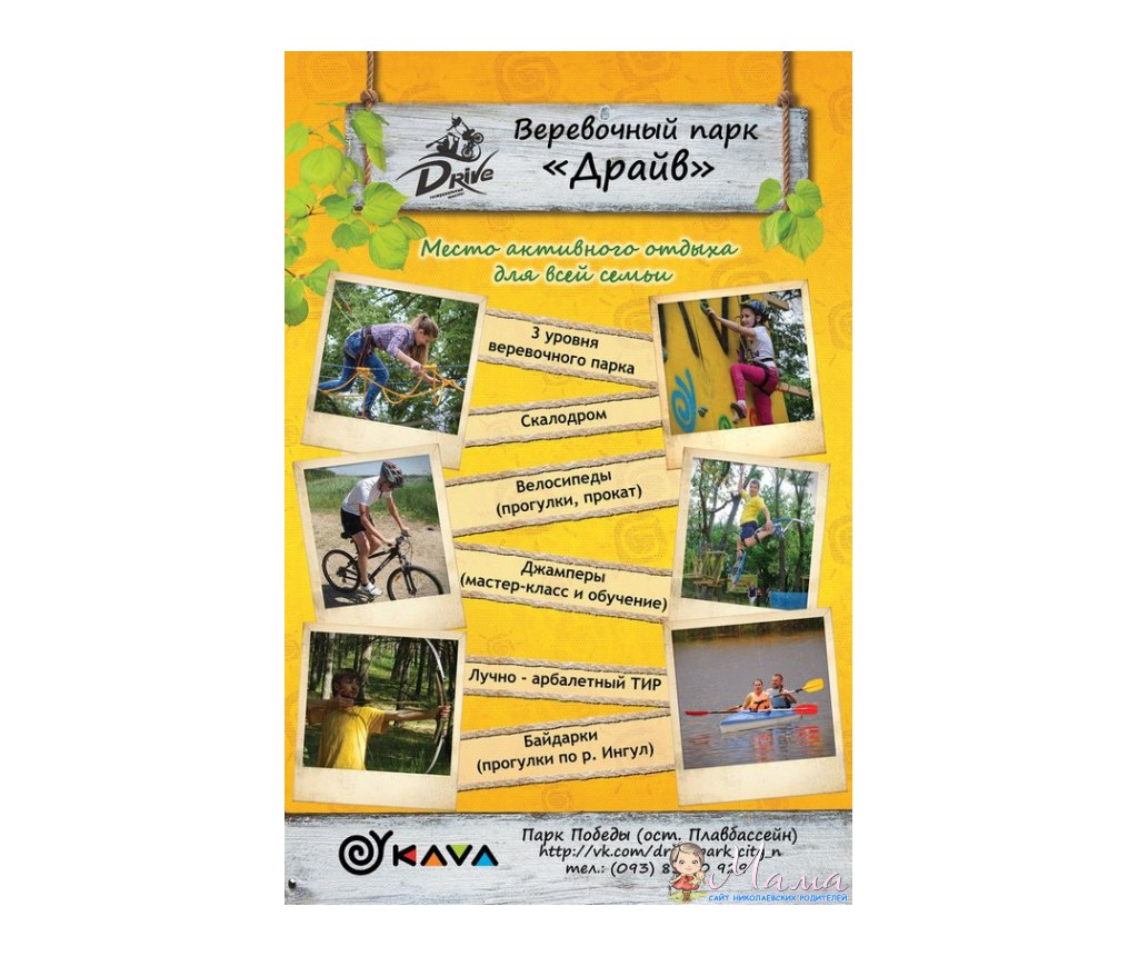 "ДРАЙВ" - первый в Николаеве стационарный веревочный парк - развлекательный комплекс, место активного отдыха для всей семьи в самом центре города Николаев - Парке Победы (ост. Плавбассейн)