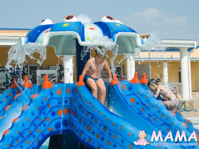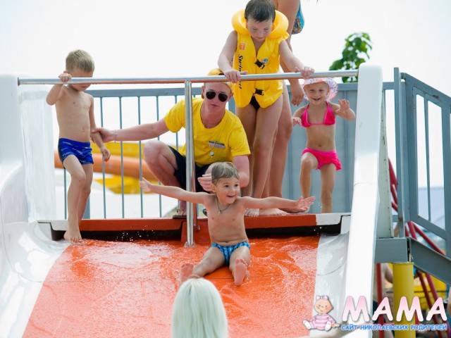 7 взрослых и 3 детских горки, детский бассейн, а ...