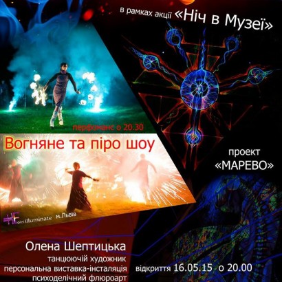 По закінченню заходу Олена Шептицька разом зі своєю командою представить на вулиці перед входом в музей вогняне та пірошоу.