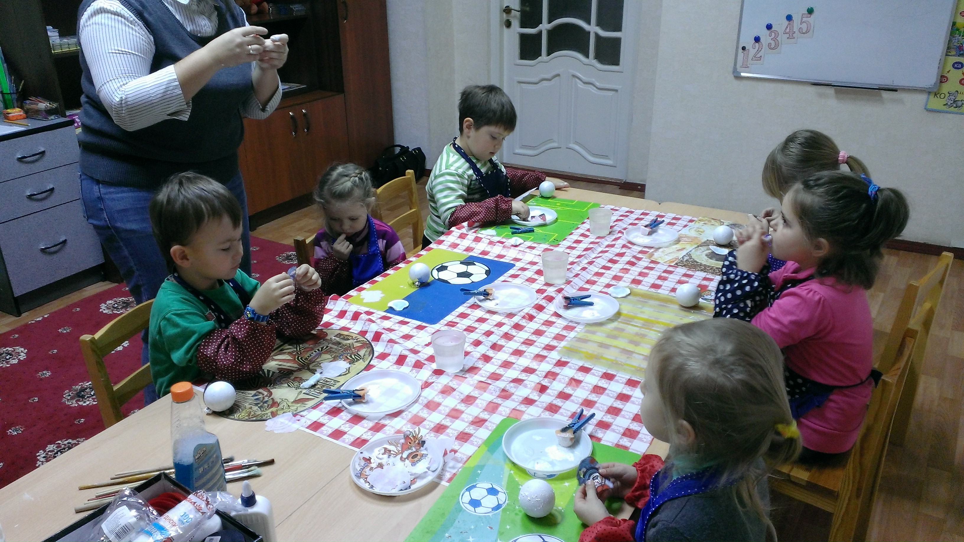 Детки своими ручками смогли украсить новогодний шарик по своему желанию, научились смешивать краски и делать искусственный снег из манки!![]()