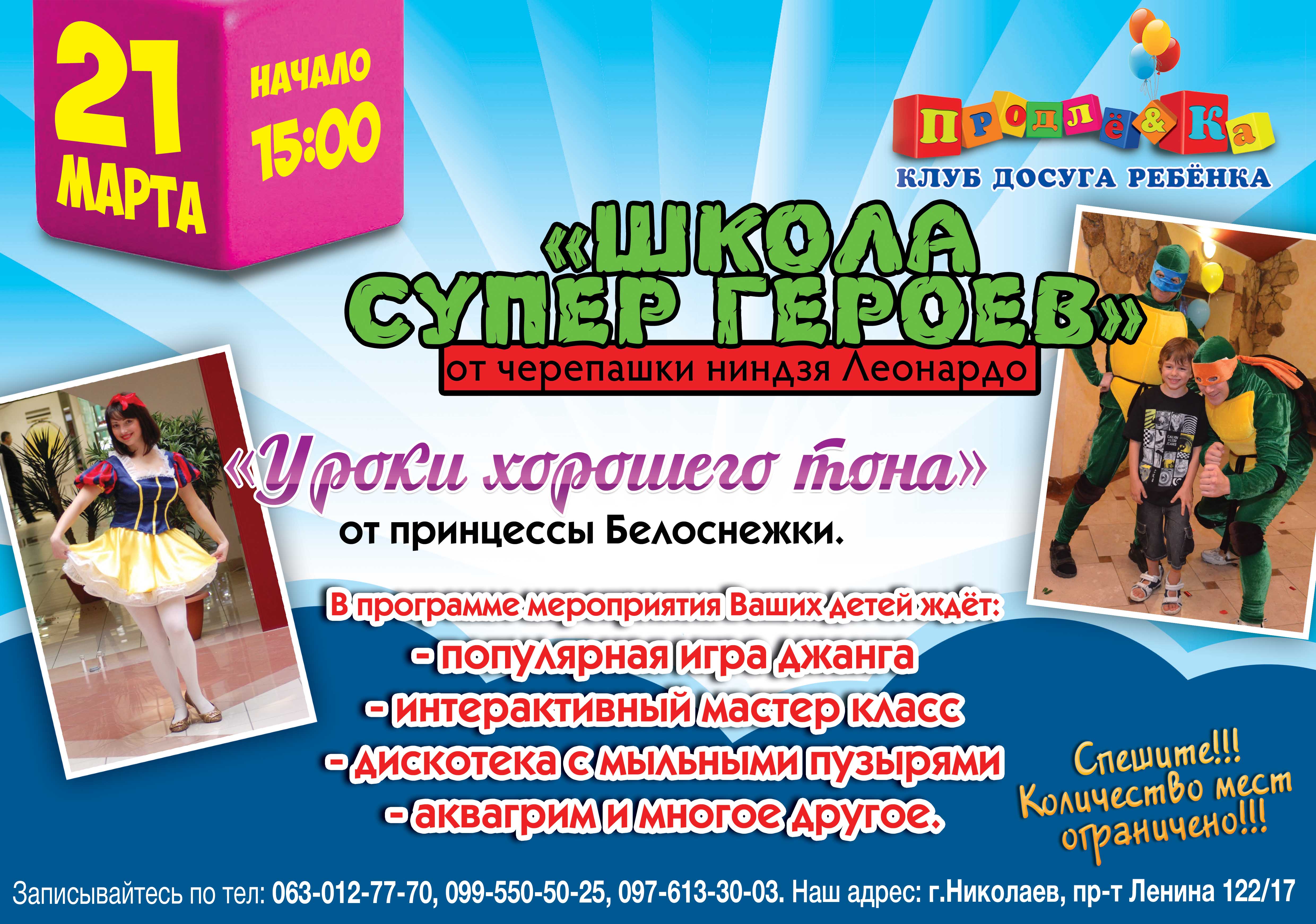 Вот и прошло наше мероприятие "Школа супер-героев" с черепашкой-ниндзя Леонардо и принцессой Белоснежкой)