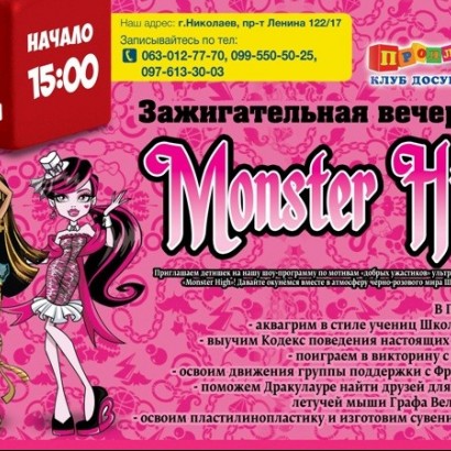 ЗАЖИГАТЕЛЬНАЯ ВЕЧЕРИНКА «MONSTER HIGH»
