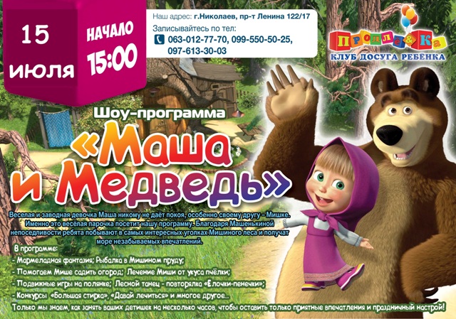 0 комментариев “Весёлая ШОУ-ПРОГРАММА "Маша и Медведь"”