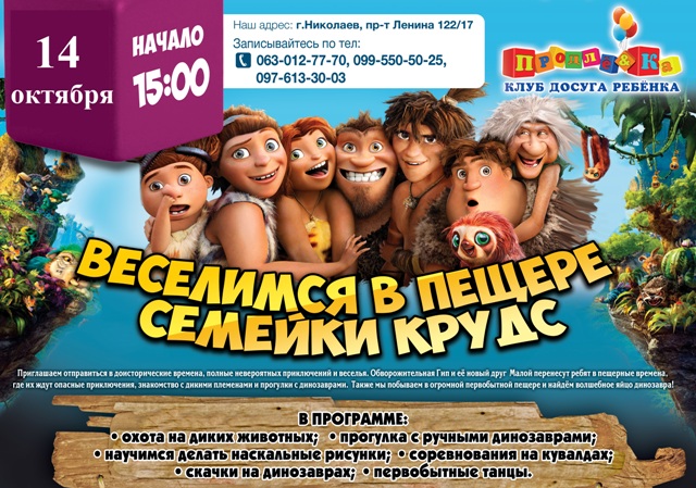 0 комментариев “ДИКАЯ ВЕЧЕРИНКА!! ДОИСТОРИЧЕСКИЕ ВРЕМЕНА, ОХОТА И ПРИКЛЮЧЕНИЯ ЖДУТ ВАС!!! ВЕСЕЛИТЬСЯ В ПЕЩЕРЕ СЕМЕЙКИ КРУДС!”