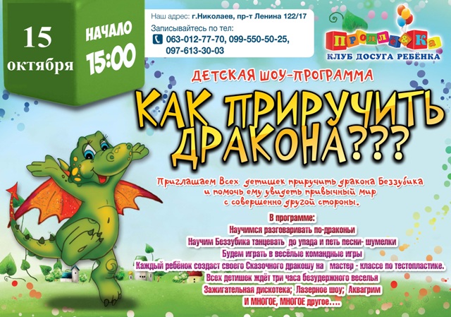 0 комментариев “Детская ШОУ-ПРОГРАММА " КАК ПРИРУЧИТЬ ДРАКОНА??? "”