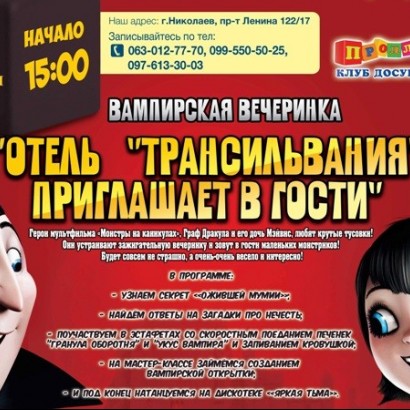 ВАМПИРСКАЯ ВЕЧЕРИНКА "ОТЕЛЬ "ТЕРАНСИЛЬВАНИЯ" ПРИГЛАШАЕТ В ГОСТИ"!!!