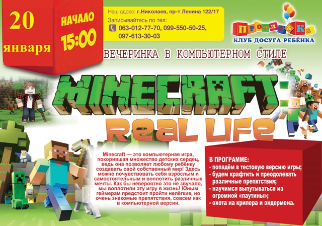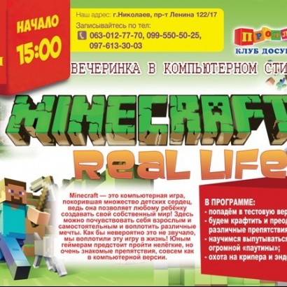 ВЕЧЕРИНКА В КОМПЬЮТЕРНОМ СТИЛЕ "MINECRAFT: REAL LIFE"