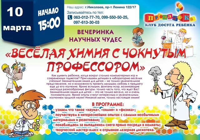 В СУББОТУ НА 15:00!!!!! Приглашаем на ВЕСЁЛУЮ ХИМИЧЕСКУЮ ВЕЧЕРИНКУ!!!!!!