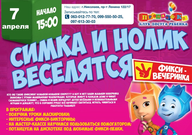 В СУББОТУ 7 АПРЕЛЯ!!! НА 15:00!! СУПЕР КРУТАЯ ФИКСИ ВЕЧЕРИНКА!!!!! "СИМКА И НОЛИК ВЕСЕЛЯТСЯ"!