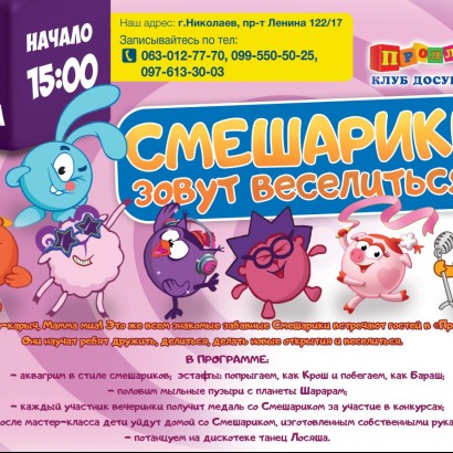- каждый участник вечеринки получит медаль со Смешариком за участие в конкурсах;