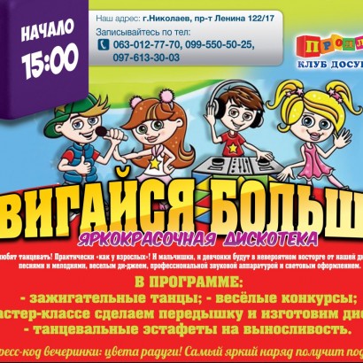 ЯРКОКРАСОЧНАЯ ДИСКОТЕКА «ДВИГАЙСЯ БОЛЬШЕ!»