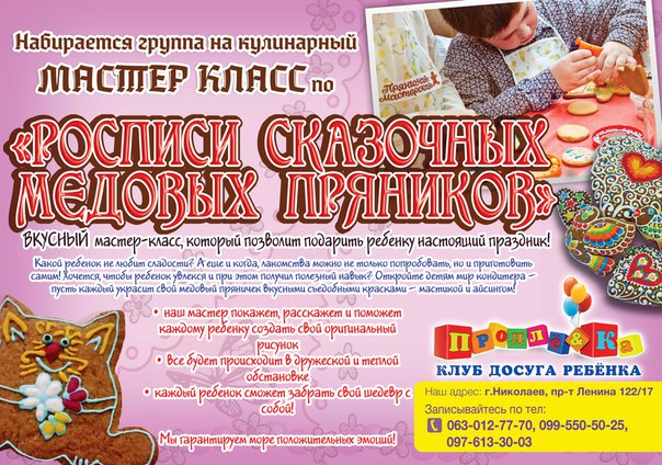 Приглашаем всех на наш вкусный мастер-класс по росписи медовых пряников в пятницу 29 апреля 2016 года (начало в 17:00)!!!