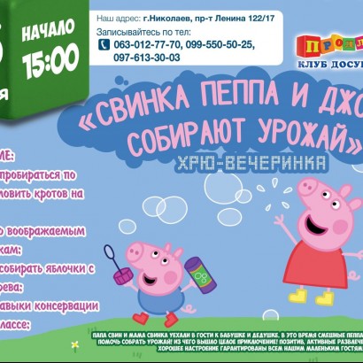 ХРЮ-ВЕЧЕРИНКА "СВИНКА ПЕППА И ДЖОРДЖ СОБИРАЮТ УРОЖАЙ"