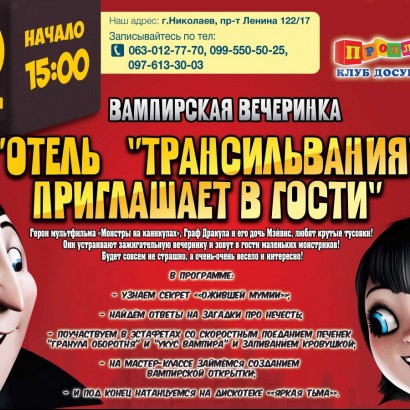 ВАМПИРСКАЯ ВЕЧЕРИНКА "ОТЕЛЬ "ТРАНСИЛЬВАНИЯ" ПРИГЛАШАЕТ В ГОСТИ"