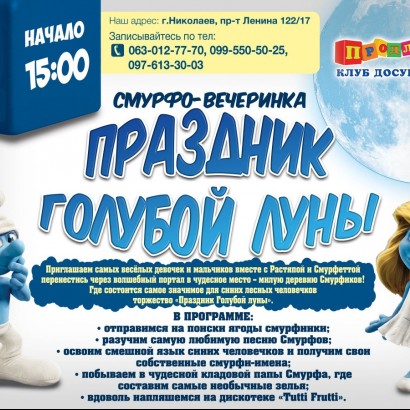 СМУРФО-ВЕЧЕРИНКА «ПРАЗДНИК ГОЛУБОЙ ЛУНЫ»