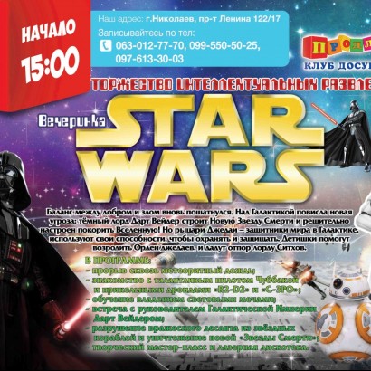ТОРЖЕСТВО ИНТЕЛЛЕКТУАЛЬНЫХ РАЗВЛЕЧЕНИЙ ВЕЧЕРИНКА "STAR WARS"