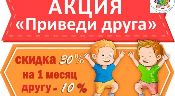 Приводите своих друзей в детский цент "Планета Знаний" и получайте гарантированную скидку на абонемент - 30% за каждого друга, купившего абонемент.