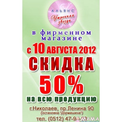 "Утренняя звезда" предлагает скидки 50% на весь ассортимент!