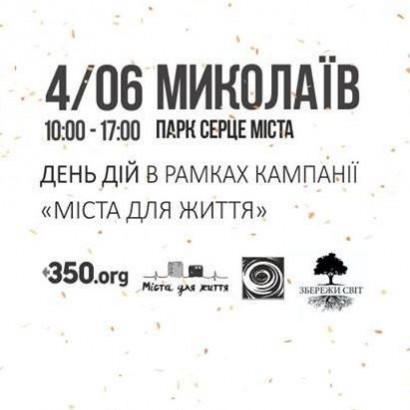 В рамках Дня Дій в місті Миколаєві 4 червня з 10:00 до 17:00 в парку Манганарівському («Серці міста», вул.Адміральська 36) відбудеться громадський пікнік з конкурсами, вікторинами та квестами як для дітей, так і для дорослих.