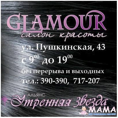 Альянс "Утренняя Звезда" приглашает Всех посетить салон красоты "Glamour"К Вашим услугам:Модельные женские и мужские стрижкиПокраска волос, мелировани...