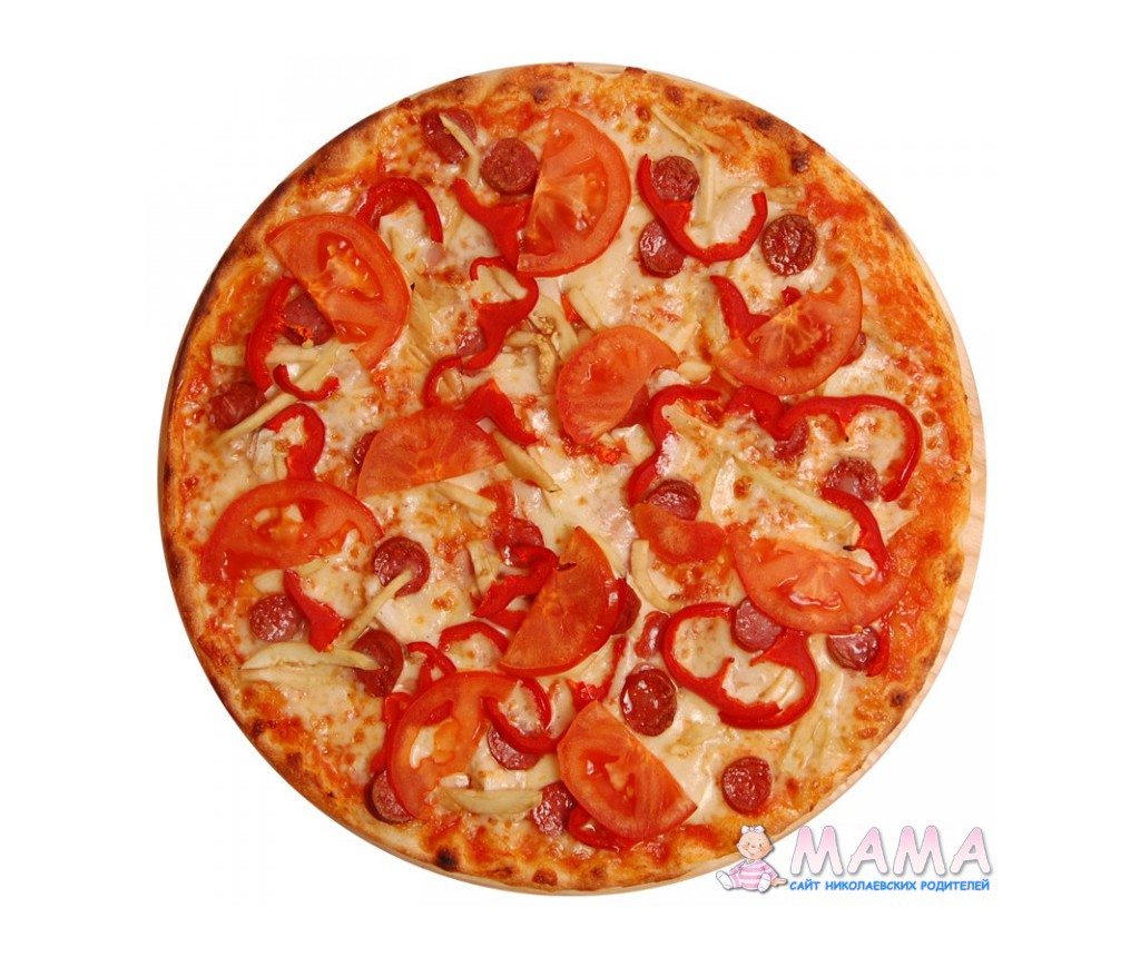 "Nikolaev-pizza" предоставляет широкий ассортимент пиццы диаметром 30 см и 40 см из свежих продуктов. Для Вас предоставляется возможность выбора толщины теста (итальяно — тонкий корж; американо — пышный корж), а также начинки, позволяющей добавить оригинальность Вашей пиццы.