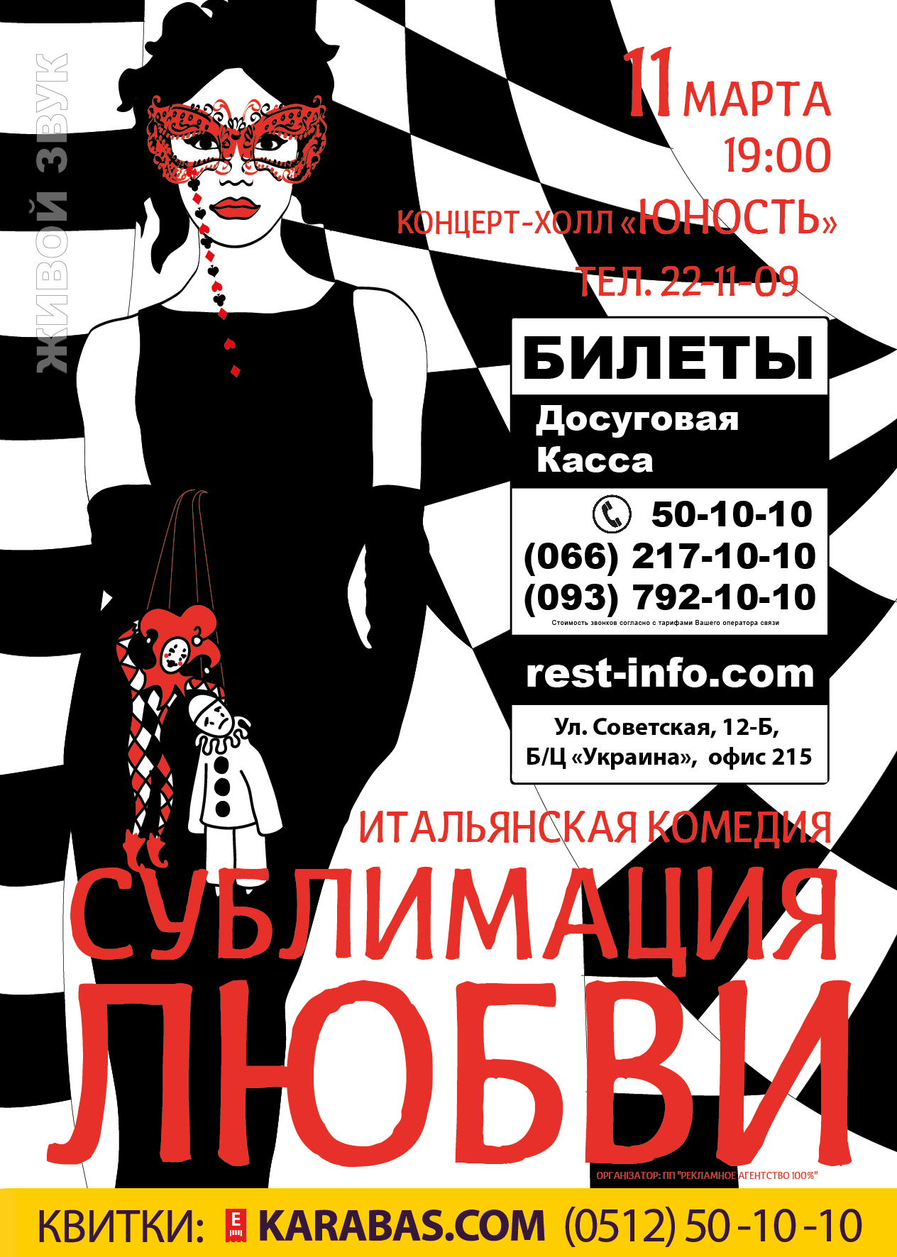 l и ll место получают по 2 билета на спектакль для взрослой аудитории "Сублимация любви",который состоится - 11 марта 2016 в 19:00 в концерт-холле Юность.