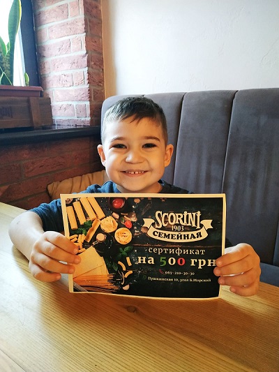 сертификат в семейную пиццерию Scorini на сумму 500 грн ![]()